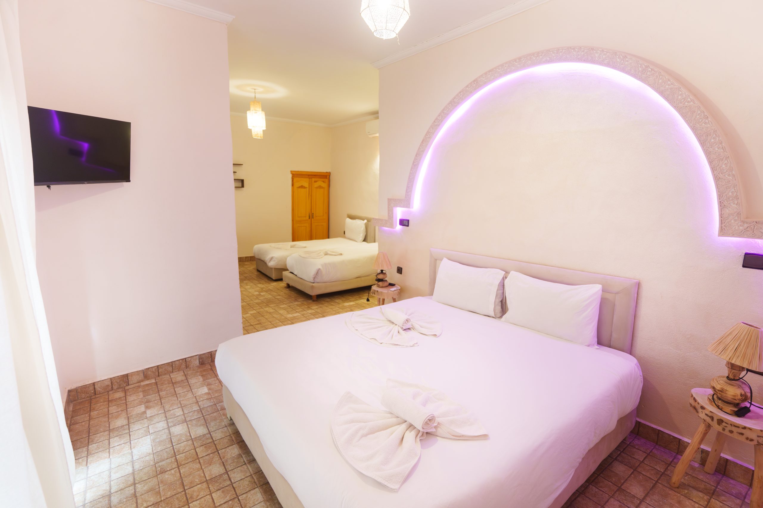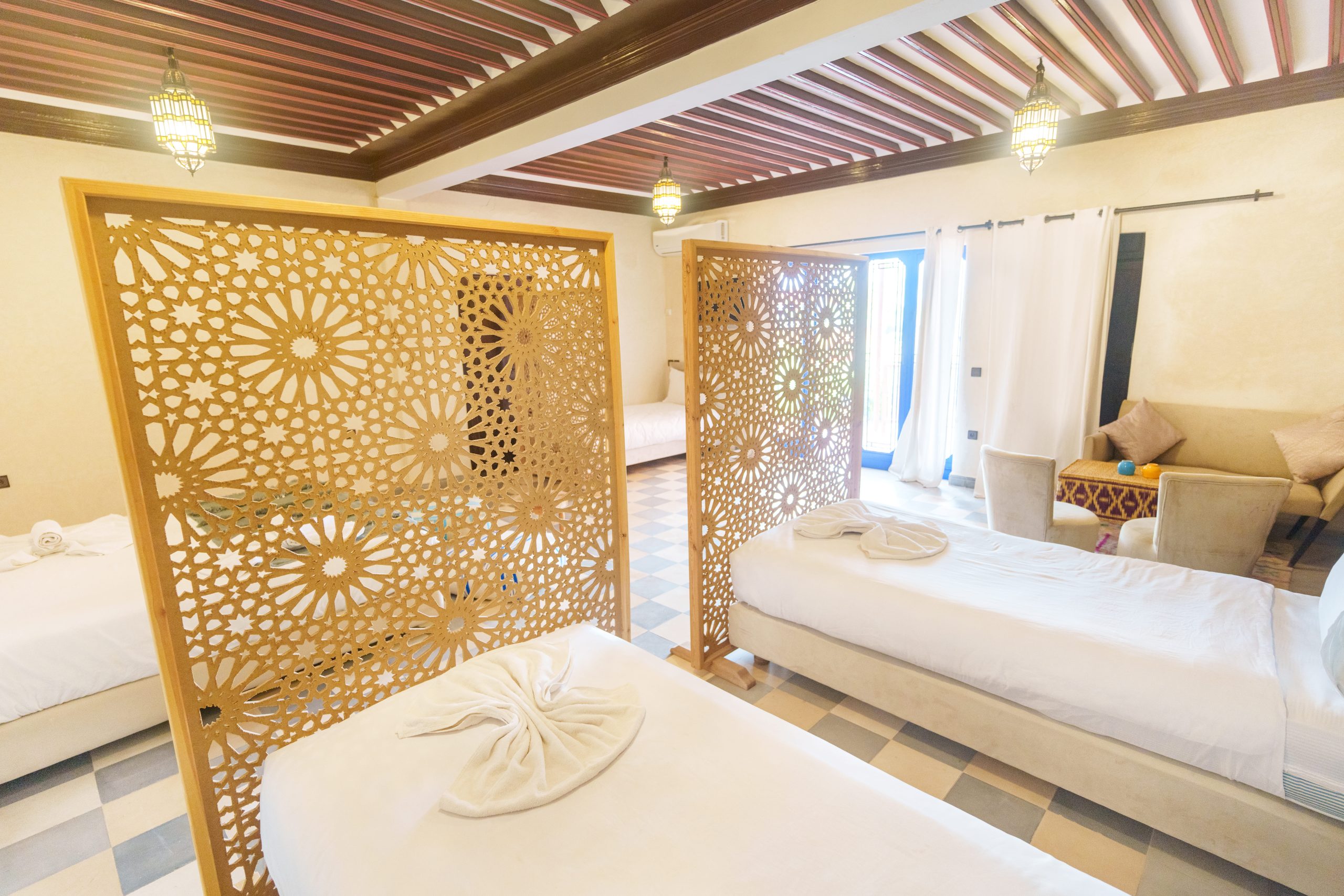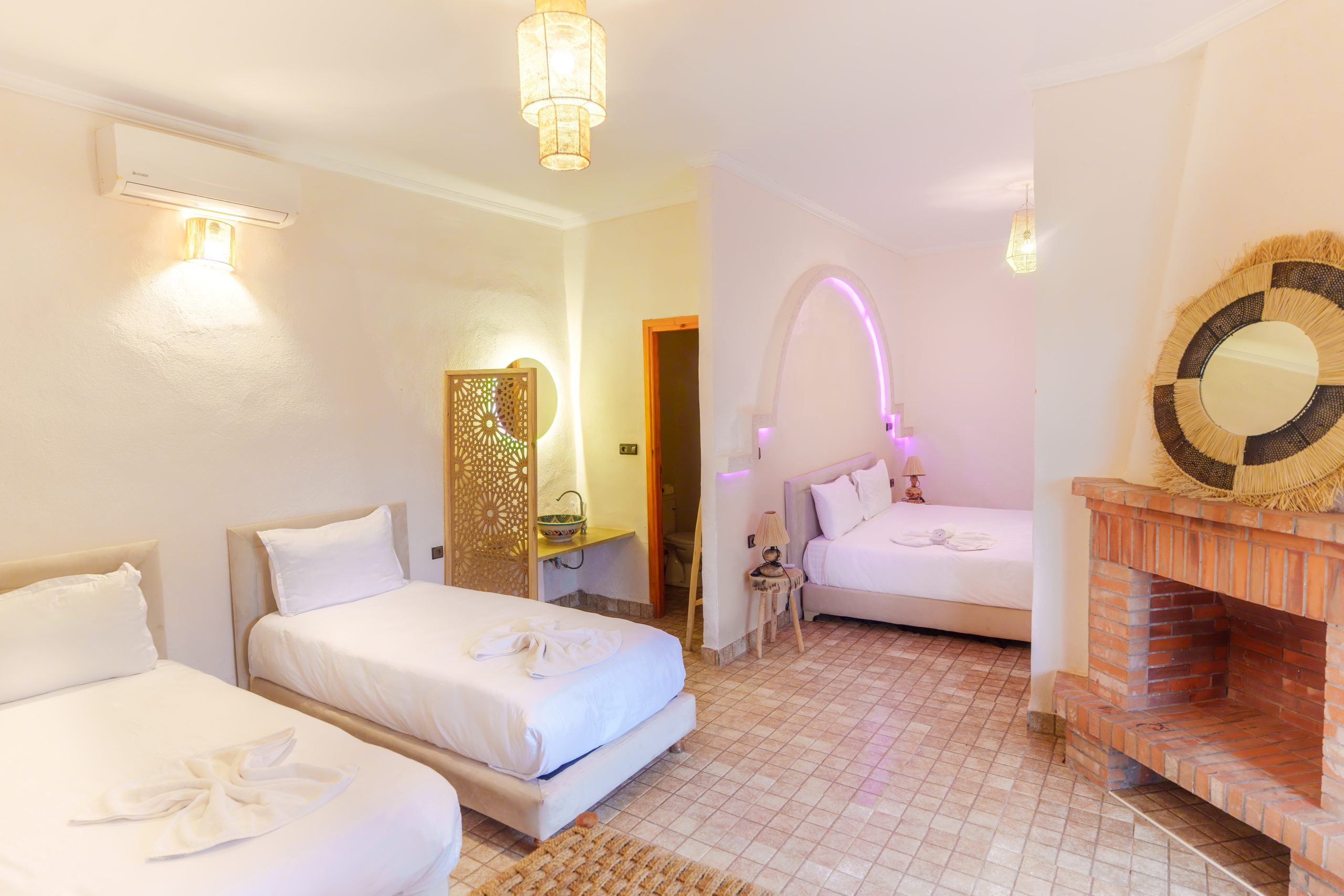 Whisper Inn vous propose 19 chambres élégantes alliant confort moderne et touches traditionnelles marocaines. Chaque espace a été pensé pour vous offrir une expérience unique, avec une capacité d’accueil totale de 50 personnes. Découvrez nos différentes catégories d’hébergement et choisissez celle qui vous correspond.