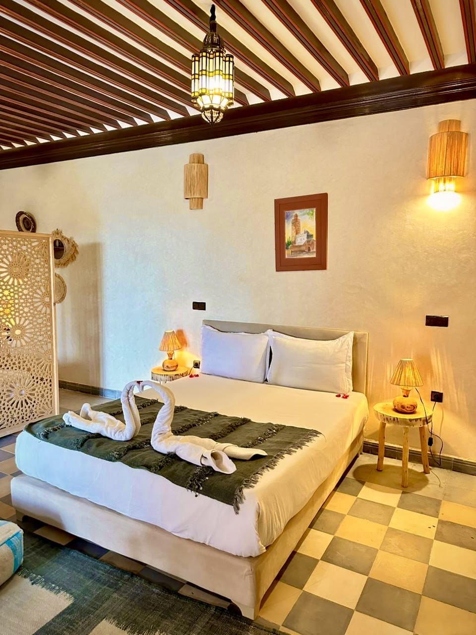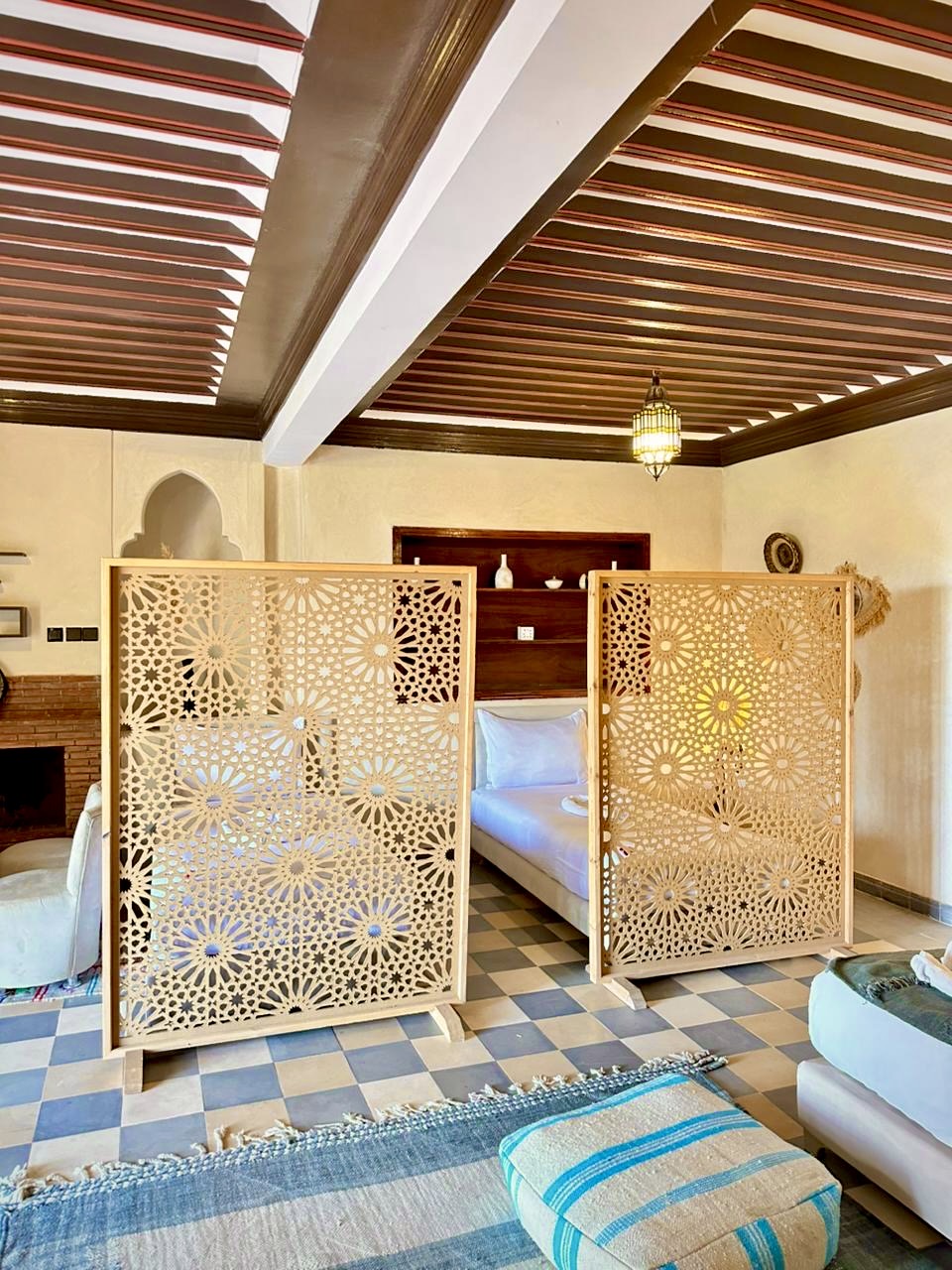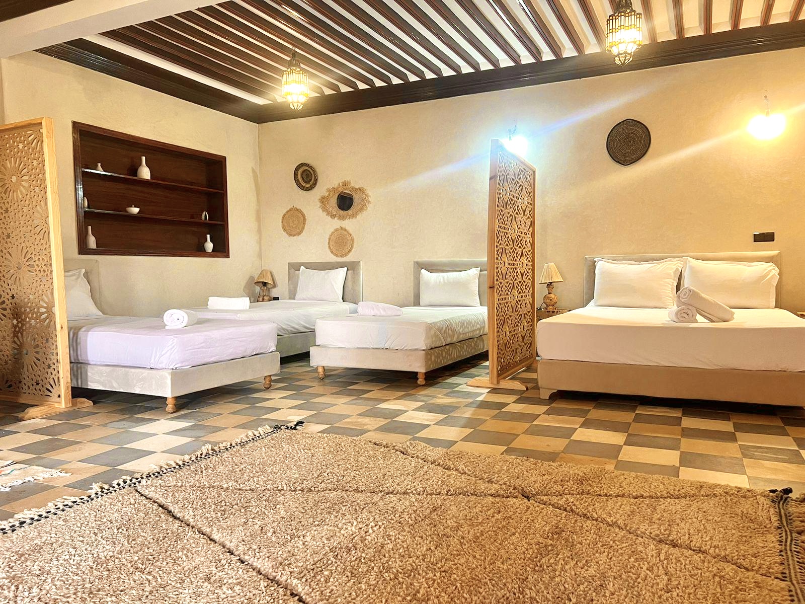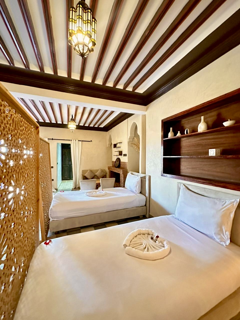 Whisper Inn vous propose 19 chambres élégantes alliant confort moderne et touches traditionnelles marocaines. Chaque espace a été pensé pour vous offrir une expérience unique, avec une capacité d’accueil totale de 50 personnes. Découvrez nos différentes catégories d’hébergement et choisissez celle qui vous correspond.