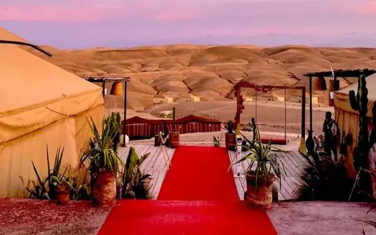 Plongez au cœur du désert d’Agafay, une étendue dorée aux portes de Marrakech. Entre dunes rocailleuses, couchers de soleil envoûtants et nuits sous les étoiles, vivez une parenthèse magique et hors du temps !